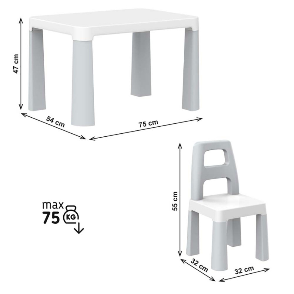 – комплект із двома стільцями ідеально підходить для спільних занять, ігор та навчання, що сприяє розвитку комунікативних навичок та й загалом поліпшує настрій;