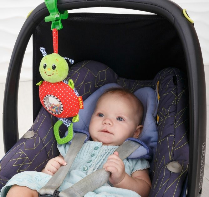 Їжачок всередині іграшки, мультифактурні тканини та різнокольорові стрічки розвивають дрібну моторику новонародженого, зорове та слухове сприйняття.