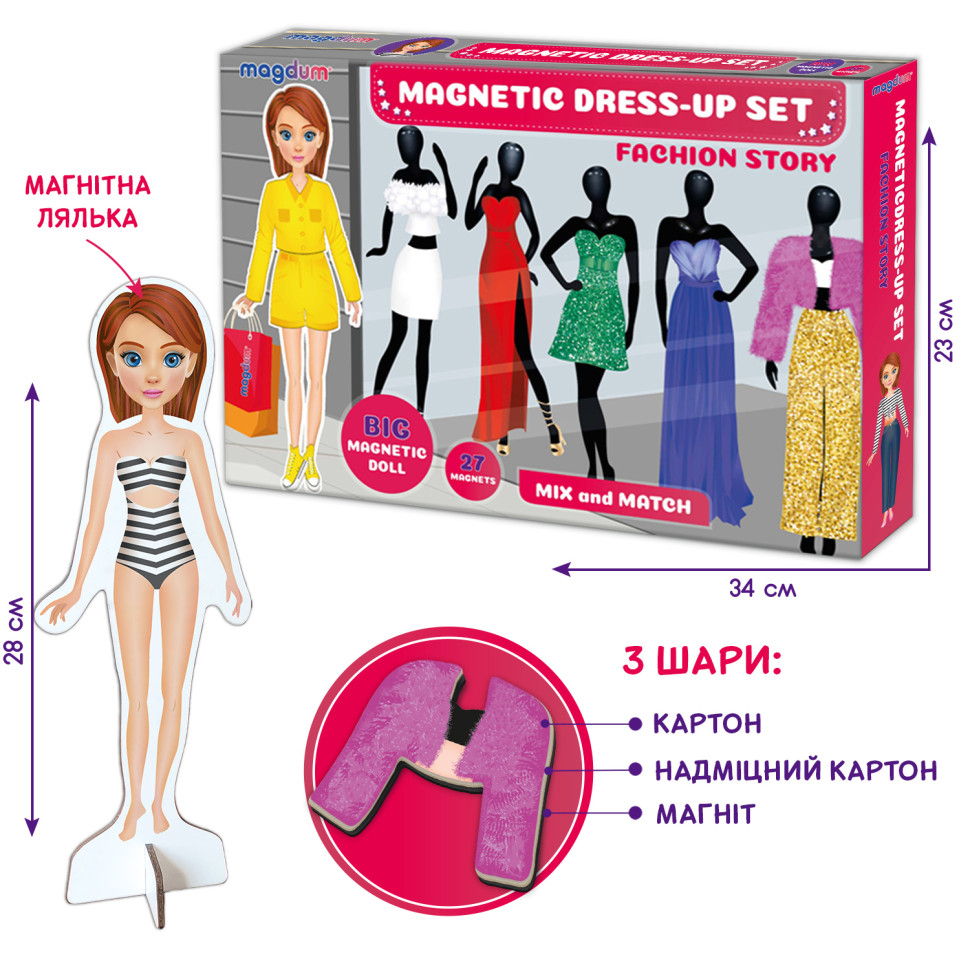 Настільна магнітна гра "Fashion story" ML4032-08 EN магнітна лялька, 27 магнітів