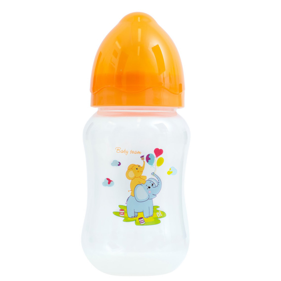 Пляшечка для годування з широким горлом та силіконовою соскою 1002 помаранчевий 250 мл
